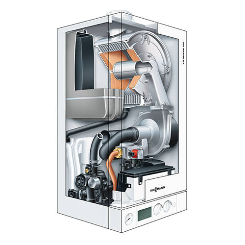 Конденсационный настенный газовый котел Vitodens 100-W с оптимальным соотношением цена/производительность, высоким комфортом отопления и приготовления горячей воды, компактными габаритами размерами и классическим элегантным дизайном